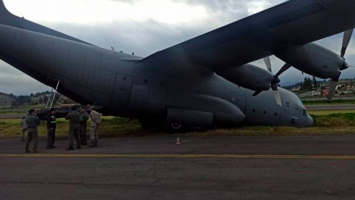 La mañana de este martes 13 de mayo de 2025, un avión de la Fuerza Aérea Ecuatoriana (FAE) sufrió un incidente en la pista del Aeropuerto Internacional Cotopaxi, en Latacunga. Se trata de un Boeing C-130 Hércules, donado por Estados Unidos en marzo de 2024, que presentó problemas en los frenos según el experto en aviación Nicolás Larenas en su cuenta de x, lo que provocó que la aeronave se desviara hacia un costado de la calle de rodaje.